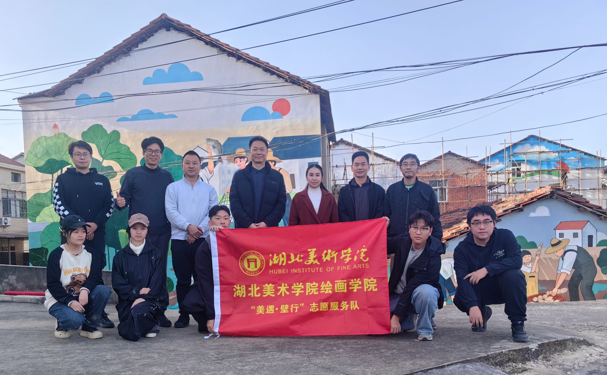 2025年11月,湖北美术学院绘画学院“美遇·壁行”志愿服务队走进武汉市江夏区金口街道,开展以“艺术赋能乡村文明建设”为主题的志愿服务活动。师生团队深入金水社区与艾岭村,累计绘制约750平方米主题墙绘,将专业创作融入乡村文明建设,提升文化服务和文化产品供给能力,推动优质文化资源直达基层、惠及群众。以艺术笔墨绘就文明乡风,提升乡村治理水平。校地双方积极探索基层社会治理体系和治理能力现代化建设示范区创建的江...