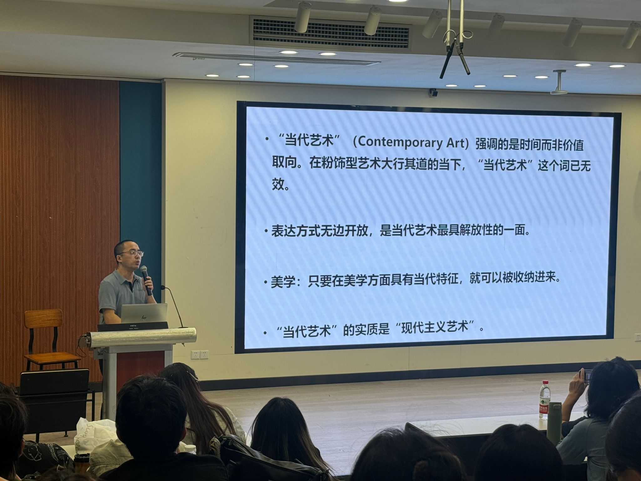 讲座围绕自由主义、虚无主义、泛灵论、保守主义四个方向进行深入探讨。讲座过程中,杜老师幽默风趣的语言赢得阵阵掌声。现场师生纷纷表示,这次讲座不仅增长了见识,更重要的是启发了他们对艺术本质的深思。