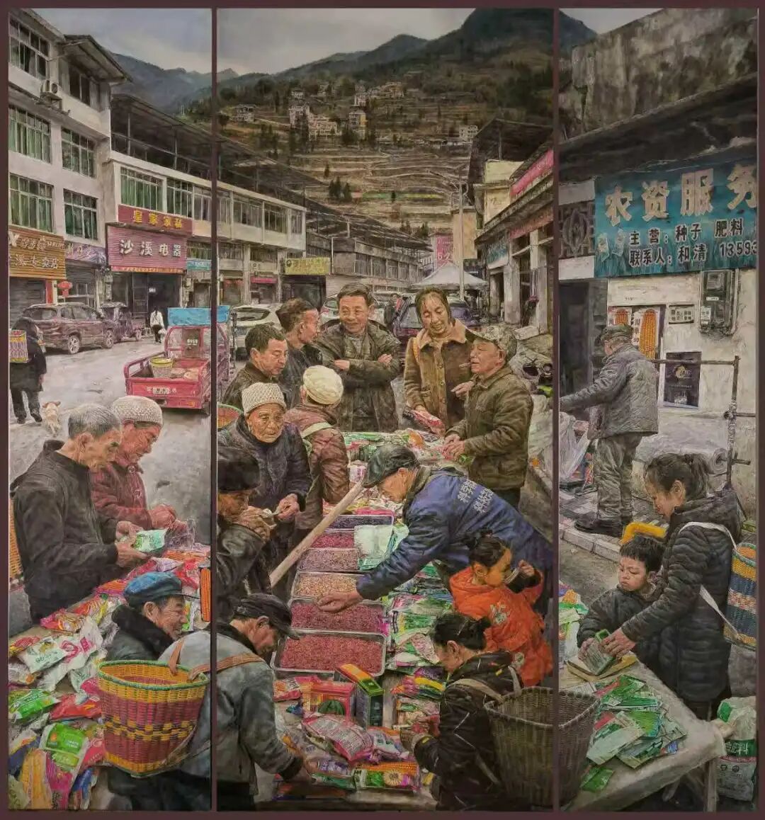 孙鹏《科技兴农——土家选种备春耕》水彩 153x169cm 2024