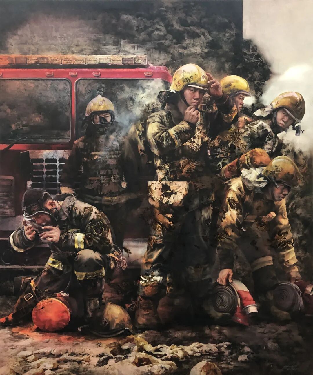 邵昱皓 《中国消防力量》纸本水彩 180x150cm