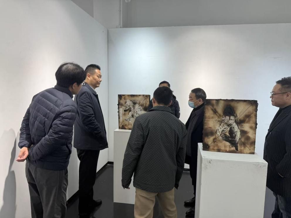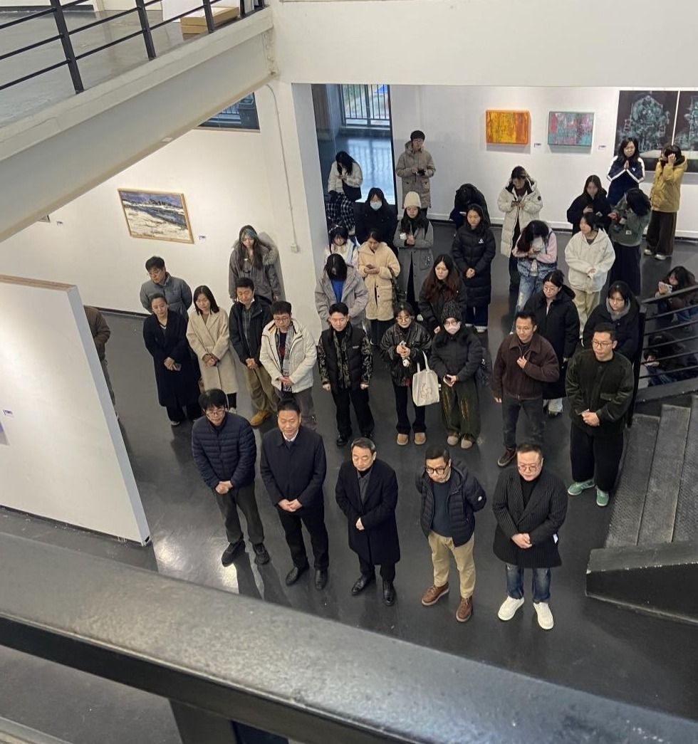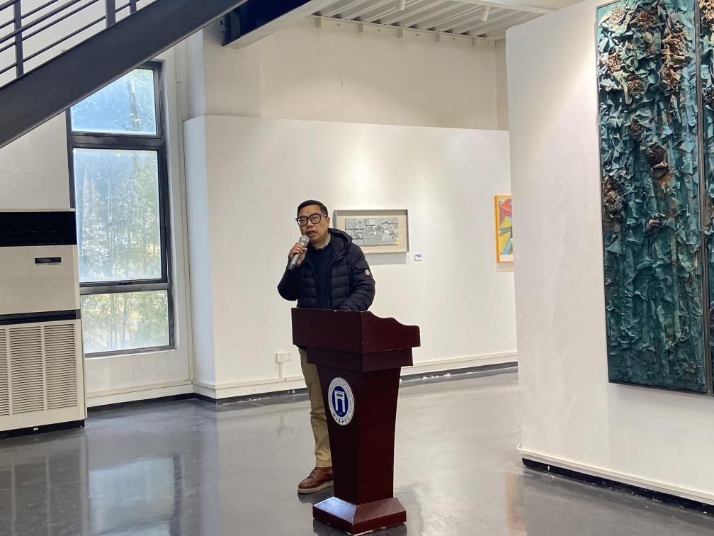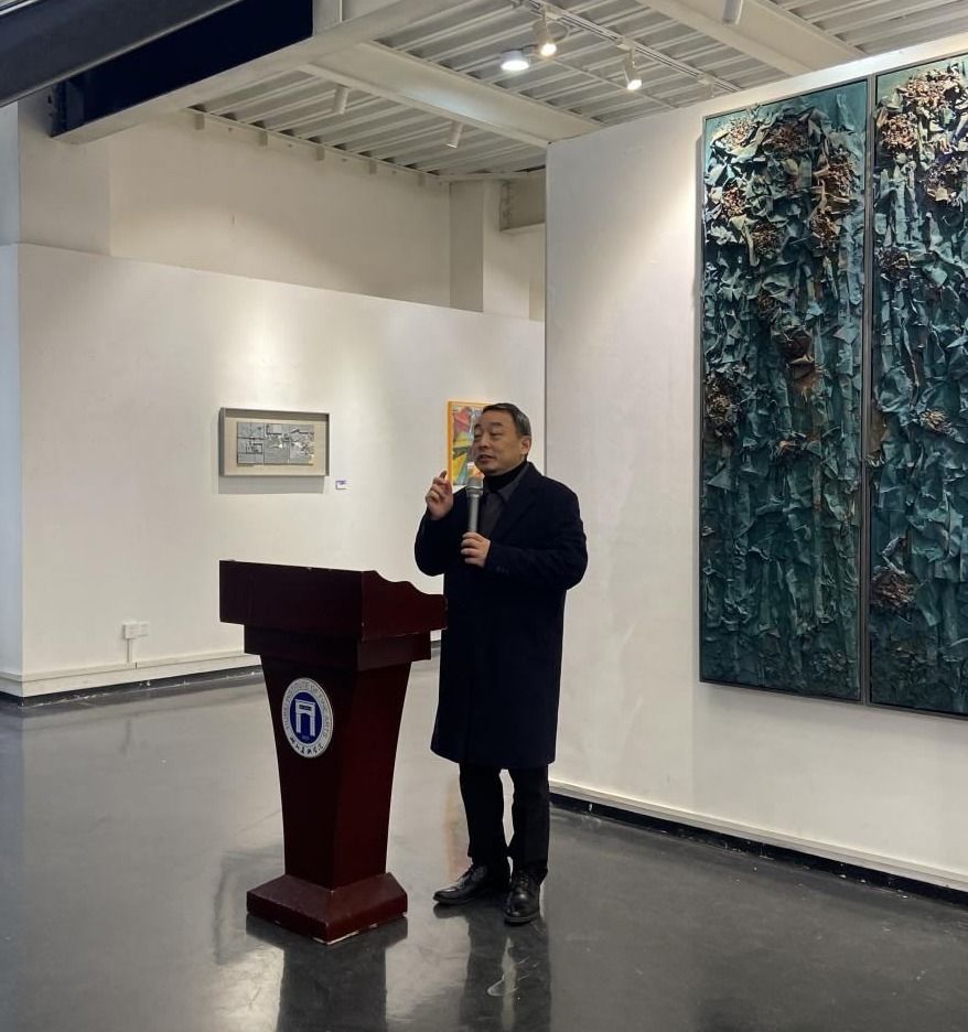 12月18日,“江城物语—2025武汉首届综合材料绘画邀请展”在湖北美术学院绘画学院A4展厅拉开帷幕。湖北美术学院党委副书记、校长周峰、人事处处长李慧、绘画学院领导班子成员、参展艺术家和师生代表参加开幕式。