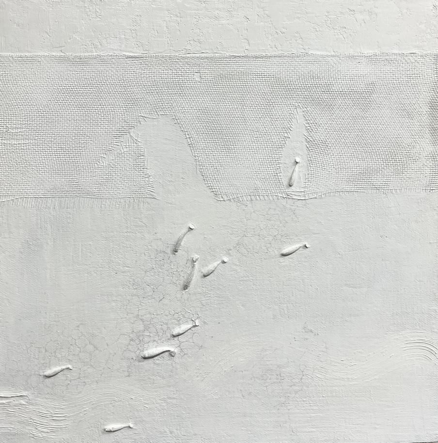 本次展览以“物语”为主题,旨在通过综合材料的多元表达,倾听物质背后的故事,感受创作者的情感与思考。“物”,是艺术的物质基础,是看得见、摸得着的实体存在。它可以是自然界的馈赠,如泥土的质朴、树叶的轻盈;也可以是人类文明的产物,如金属的冷峻、塑料的绚丽。每一件材料都承载着独特的记忆与符号,它们在艺术家的手中被重新解构、组合,赋予新的生命与意义。“语”,则是艺术的精神内核,是创作者通过材料传递的思想与情感。它可以是对社会现实的深刻反思,如对环境问题的忧虑、对城市化的思考;也可以是对内心世界的细腻表达,如对孤独的诠释、对美好的向往。在综合材料绘画中,“物”与“语”相互交织、相互映衬,共同构建起一个充满张力与想象的艺术世界。