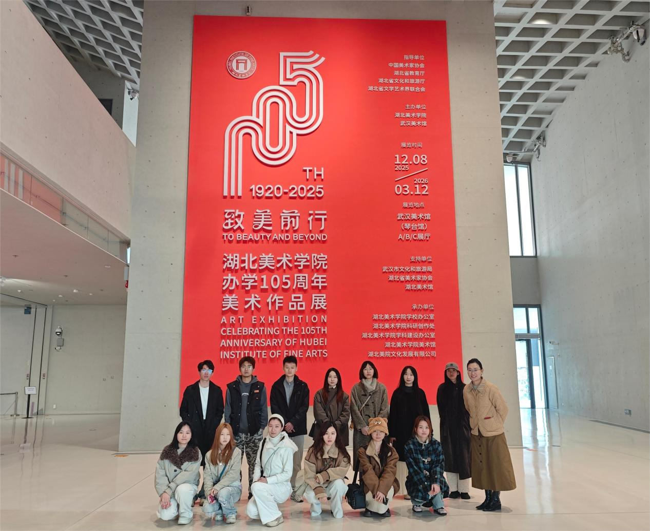 3月10日上午,绘画学院组织师生走进武汉美术馆琴台馆,共同沉浸式参观“致美前行——湖北美术学院办学105周年美术作品展”。展厅内,师生们在跨越百年的艺术佳作间穿梭,仿佛与历代湖美创作者展开对话,在视觉与心灵的双重体验中感悟学校深厚的艺术底蕴与传承力量,接受了一场生动的艺术思政课洗礼。